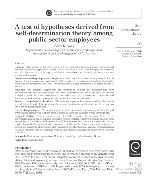 Pdf A Test Of Hypotheses Derived From Self Determination Theory Among Public Sector Employees Bard Kuvaas Academia Edu